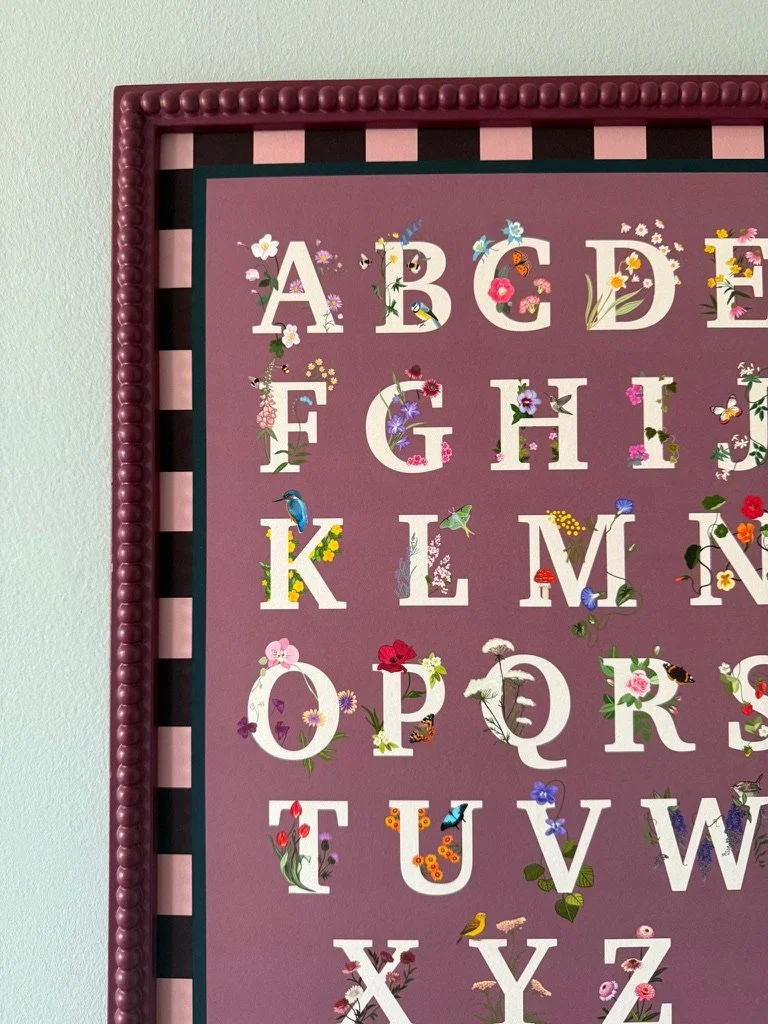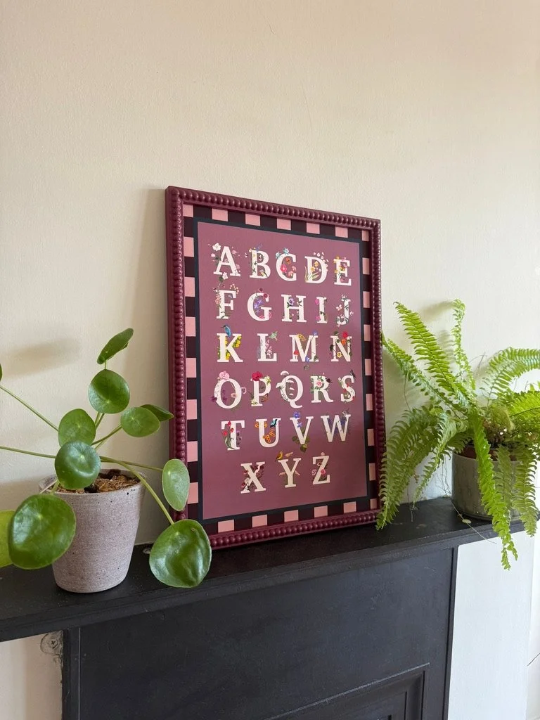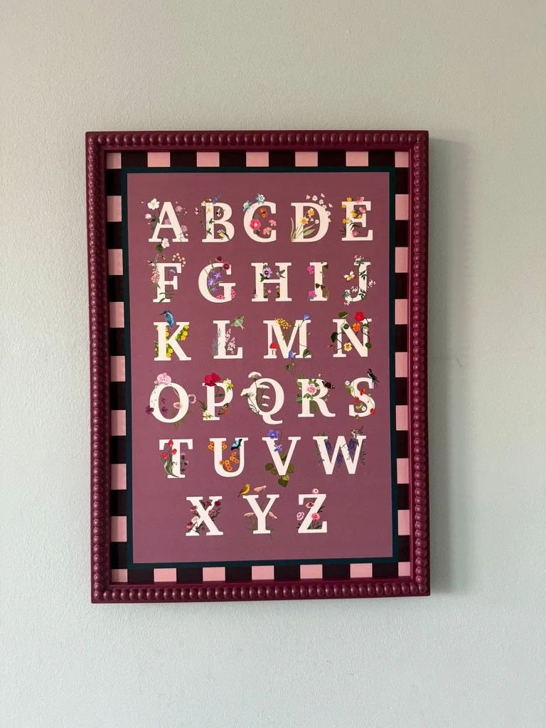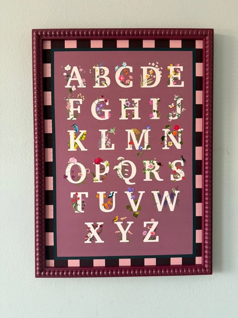 Blackberry bramble in flower, Hand Painted Mini Artwork, framed in a green coloured frame.