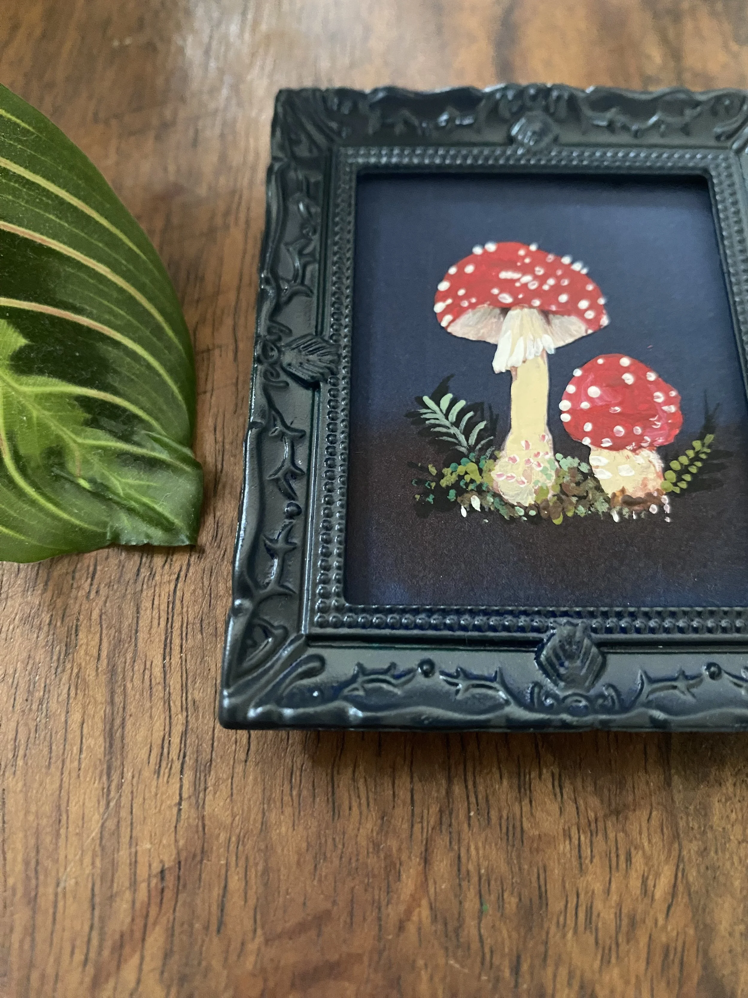 Hand Painted Mini Artwork, framed in a deep wine coloured frame.